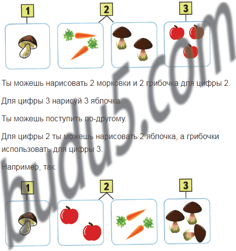 Нарисуй столько морковок, или яблок, грибочков, сколько указано цифрами.