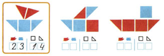 Сколько всего фигур на каждом рисунке кораблика?