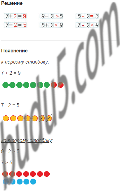 Составь и запиши верные равенства и верные неравенства, используя числа 7, 2, 5, 9 и знаки +, —, =, >, <.