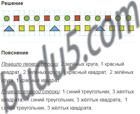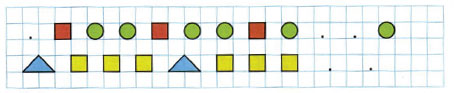 Определи правило, по которому составлен каждый ряд геометрических фигур. Начерти пропущенные фигуры.