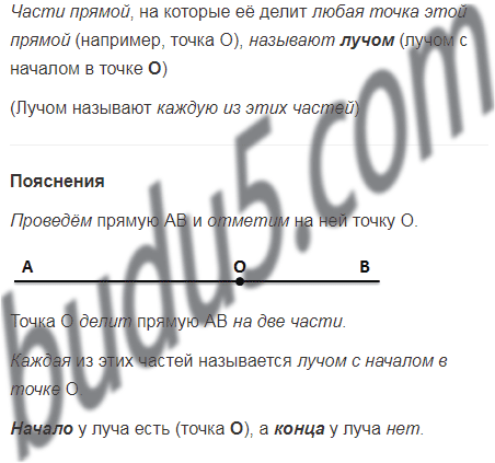 Как называют части прямой, на которые её делит любая точка этой прямой? Как при этом называют эту точку?