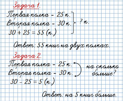 2) в вопросе которых есть слова «на сколько больше» или «на сколько меньше».
