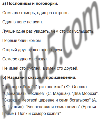 б) названий сказок и других литературных произведений, в которые входят имена числительные.