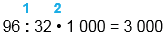 1) 96 : 32 = 3 2) 3 • 1000 = 3000 |