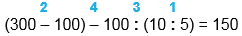 1) 10 : 5 = 2 2) 300 - 100 = 200 3) 100 : 2 = 50 4) 200 - 50 = 150 | |||||||||||||||