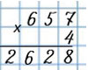 Умножаю сотни: 8 • 2 = 16. 16 сот. - это 1 ед. тыс. и 6 сот.; 6 сот. пишу под сотнями, а 1 ед. тыс. прибавлю к единицам тысяч после умножения единиц тысяч.