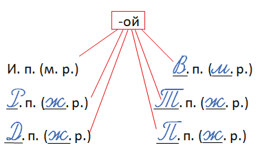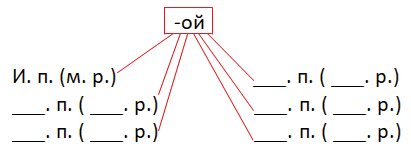 В каком падеже и в каком роде у имён прилагательных может быть данное окончание? Заполните пропуски в схеме.