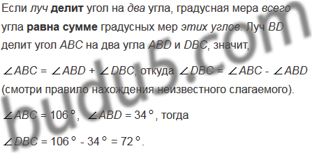 Начертите угол АВС, равный 1060. Лучом ВD разделите этот угол на два угла так, чтобы АВD = 340. Вычислите величину угла DВС.