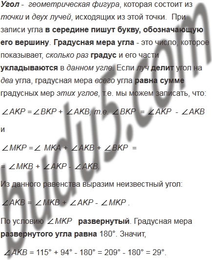 Из вершины развёрнутого угла MKP, изображённого на рисунке, проведены лучи KA и KB так, что MKB = 115°, AKP = 94°. Вычислите градусную меру угла AKB.
