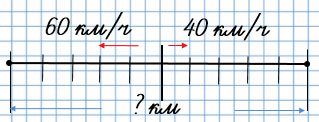 1) 60 + 40 = 100 (км/ч) - скорость удаления.