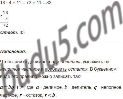 Найдите делимое, если делитель равен 18, неполное частное - 4, а остаток - 11.