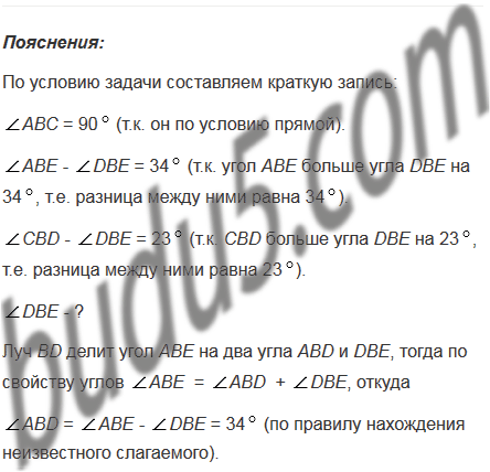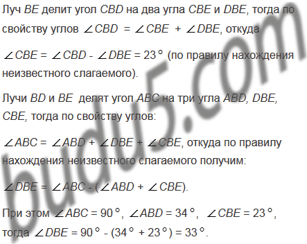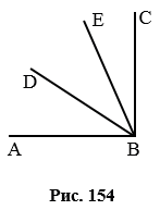 Из вершины прямого угла АВС (рис. 154) провели лучи ВD и ВЕ так, что угол АВЕ оказался больше угла DВЕ на 340, а угол СВD больше угла DВЕ на 230. Какова градусная мера угла DВЕ?