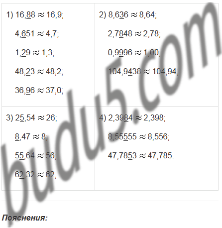 1) до десятых: 16,88; 4,651; 1,29; 48,23; 36,96;