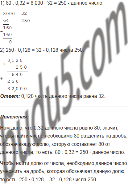 Найдите 0,128 числа, 0,32 которого равно 80.