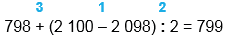 1) 520 - 120 = 400 2) 93 - 87 = 6 3) 400 • 6 = 2 400 4) 2 400 + 700 = 3 100 | |||||||||||||||||||