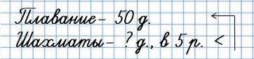 5. Плаванием занималось 50 детей, а шахматами - в 5 раз меньше. Сколько детей занималось шахматами?