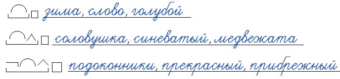 Рассмотрите схемы. Подберите к ним слова с таким же составом. Запишите.