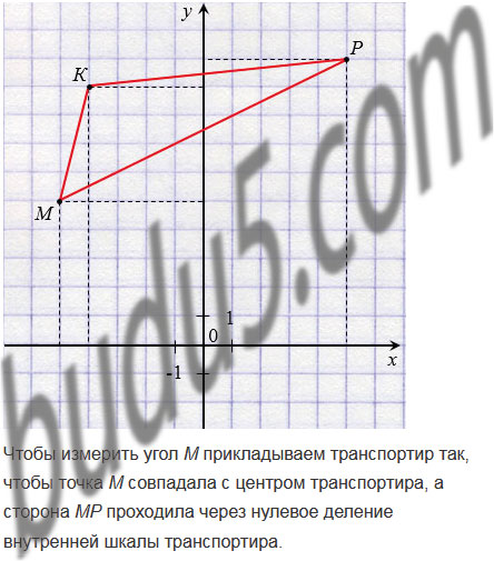 4; 9), Р(5; 10). Измерьте транспортиром углы этого треугольника.