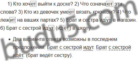 1) Кто (хотеть) выйти к доске? 2) Что (означать) эти слова? 3) Кто из девочек (уметь) вязать крючком? 4) Что (лежать) на ваших партах? 5) Брат и сестра (идти) в магазин. 6) Брат с сестрой (идти) в школу.