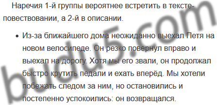 Какие наречия вероятнее встретить в тексте-повествовании, а какие — в тексте-описании?