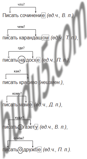 писать (Что? чем? где? как? кому? куда? о чём?)