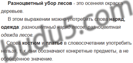 Что означает выражение разноцветный убор лесов? Можно ли употребить в этом выражении слова наряд, костюм, платье, одежда? Как вы думаете, почему автор употребил слово убор?