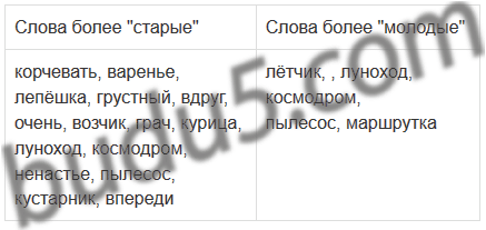 Прочитайте примеры собственно русских слов. На каком основании возможно разделить данные слова на более «старые» и более «молодые»? Запишите слова в два столбика.