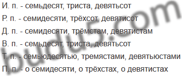 Опираясь на образец, устно просклоняйте числительные 70, 300, 900.