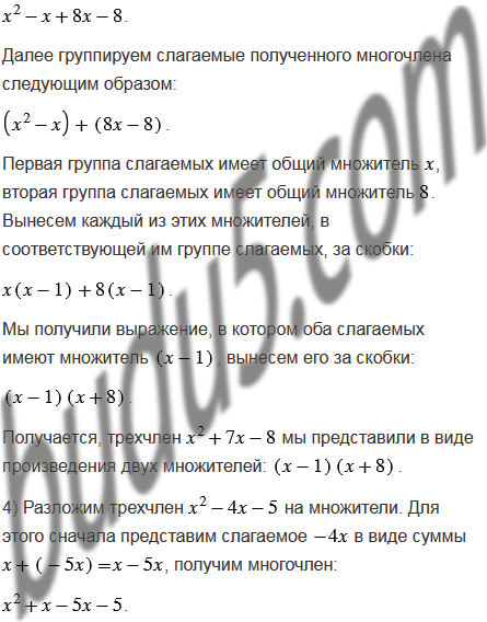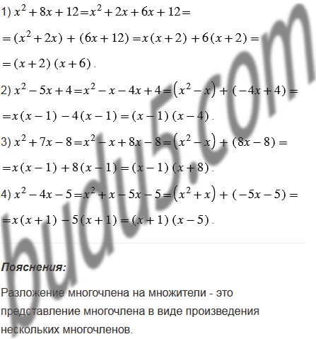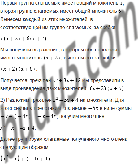 Разложите на множители трехчлен, представив предварительно один из его членов в виде суммы подобных слагаемых: