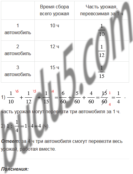 Один автомобиль может перевезти собранный с поля урожай за 10 ч, другой - за 12 ч, а третий - за 15 ч. За сколько часов они смогут перевезти урожай, работая вместе?