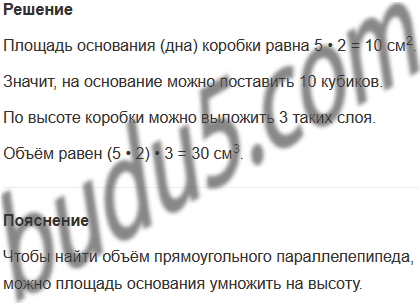 Задание № 3. Рассмотри рисунок и определи, какие числа пропущены. Как найти объём прямоугольного параллелепипеда (коробки)? Сделай вывод.