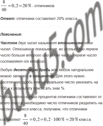 В классе 40 учащихся, из них 8 учащихся учатся на "5". Сколько процентов учащихся класса составляют отличники?