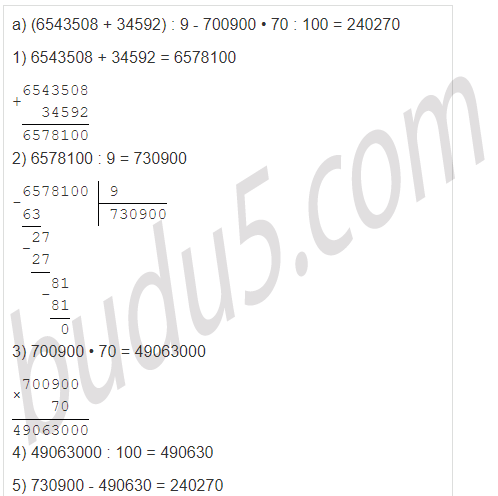 | а) (6543508 + 34592) : 9 - 700900 • 70 : 100 |