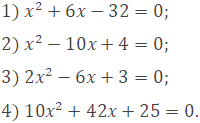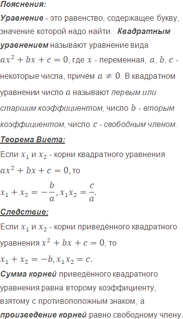 Не решая уравнение, найдите сумму и произведение его корней: