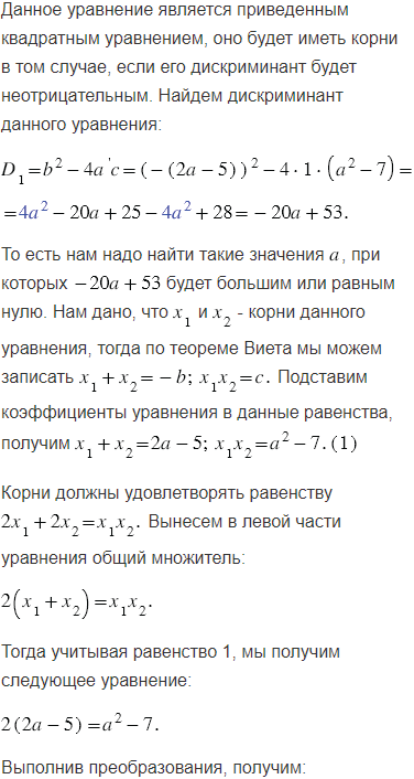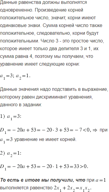 Известно, что и - корни уравнения При каком значении выполняется равенство ?