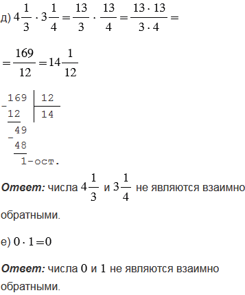 Получается, чтобы проверить взаимно обратные числа или нет, нужно найти их произведение.