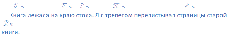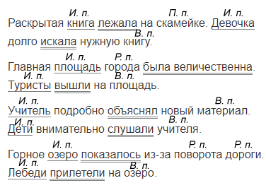 • Подчеркните в предложениях главные члены. Укажите падеж имён существительных.